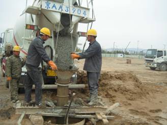 本工程原設計為干孔旋挖鉆孔灌注樁,試樁階段發(fā)現(xiàn)場地地表以下10米到14米位置存在大面積不確定位置的上層滯水,導致嚴重塌孔,經設計院同意,改為泥漿護壁成孔水下旋挖鉆孔灌注樁并采用樁端后注漿工藝。施工內容主要包括:測量放線、鋼筋籠制作、鋼筋籠運輸與吊裝、成孔、水下混凝土灌注、后注漿、渣土清運等。我公司共完成灌注樁共1026根,設計混凝土方量為7225.4m3,實際灌注方量8576.3m3,平均充盈系數1.187。試樁樁身混凝土強度等級為C40,工程樁樁身砼強度等級為C30。