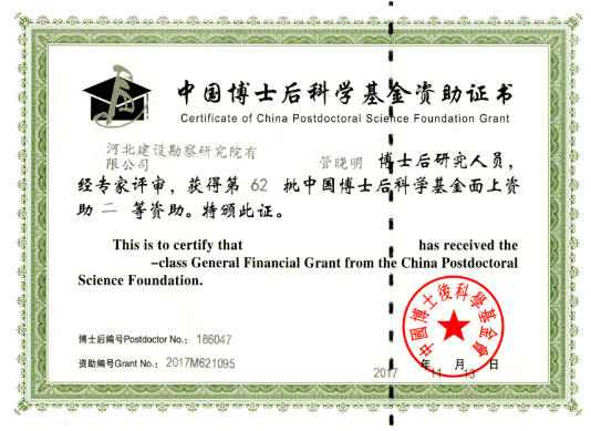 中國博士后基金,旨在資助具有創(chuàng)新能力和發(fā)展?jié)摿Φ膬?yōu)秀博士后研究人員,促進他們在科研工作中完成創(chuàng)新研究,并迅速成長為適應社會主義現(xiàn)代建設需要的各類復合型、戰(zhàn)略型和創(chuàng)新型人才。這是公司自建站以來,首次獲得國家級博士后基金資助,也是河北省唯一一家獲得本批資助的工作站。