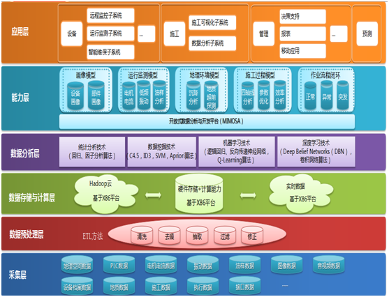 本項(xiàng)目在研究盾構(gòu)的運(yùn)行狀態(tài)進(jìn)行監(jiān)控和管理的基礎(chǔ)上,將盾構(gòu)運(yùn)行狀態(tài)參數(shù)及工況數(shù)據(jù),通過采集終端經(jīng)PLC、光纖、路由器、VPN隧道傳輸至遠(yuǎn)程數(shù)據(jù)中心,數(shù)據(jù)存儲(chǔ)使用工業(yè)級(jí)實(shí)時(shí)數(shù)據(jù)庫,采集頻率可達(dá)毫秒級(jí)。業(yè)務(wù)基礎(chǔ)—對(duì)各類盾構(gòu)機(jī)(機(jī)、電、液)深入分析,提供盾構(gòu)軌跡、管片軌跡、單環(huán)分析、掘進(jìn)效率等統(tǒng)計(jì)分析功能,以便管理決策層把握各項(xiàng)目施工情況。構(gòu)建盾構(gòu)/TBM施工與健康管理平臺(tái),實(shí)現(xiàn)以下四個(gè)功能:1、盾構(gòu)遠(yuǎn)程監(jiān)控,2、智能維保,3、盾構(gòu)施工輔助巡航,4、組態(tài)化模塊定制。進(jìn)行盾構(gòu)施工大數(shù)據(jù)相關(guān)性、關(guān)聯(lián)分析、影響因素分析,關(guān)鍵子系統(tǒng)健康管理和故障診斷,基于大數(shù)據(jù)的比較、聚類、預(yù)測(cè)實(shí)現(xiàn)對(duì)盾構(gòu)施工進(jìn)行遠(yuǎn)程管理。