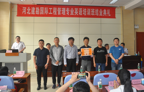 公司委托石家莊鐵道大學繼續(xù)教育學院舉辦的首屆國際工程管理專業(yè)英語培訓班(共29人,分6組),經(jīng)過28天的緊張培訓,已經(jīng)完成全部課程的學習。2018年5月14日下午,石家莊鐵道大學第九實驗室103教室,書聲瑯瑯,掌聲雷鳴,公司首屆國際工程管理專業(yè)英語培訓班結業(yè)典禮在這里舉行,出席結業(yè)典禮的有:公司總經(jīng)理李華偉、總工程師聶慶科、人力資源部主任張軍旗及全體學員;石家莊鐵道大學副校長陳進杰、繼續(xù)教育學院院長王書海、繼續(xù)教育學院副院長楊杰、外語系黨支部書記林治華、外語系副主任李玉潔、培訓班班主任孫艷以及教師和助教。