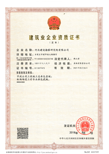 公司獲得機場場道工程專業(yè)承包貳級資質(zhì)證書