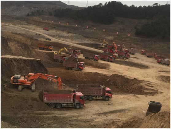 由于本工程所處地質(zhì)條件的特殊性,施工過程中爆破工作量很大,同時(shí)由于山路陡峭崎嶇,給排土場道路的施工帶來了很大難度。施工過程中,我單位秉持精心安排、用心服務(wù)的管理理念,開挖過程中合理劃分施工區(qū)域,根據(jù)不同地塊的石方開挖高度采取合理的鉆爆施工方案,既避免了交叉作業(yè)帶來的安全問題同時(shí)也提高了施工效率。
