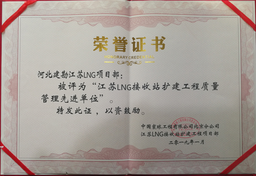 由于我公司的出色表現(xiàn),總包方中國(guó)寰球工程有限公司北京分公司對(duì)我公司和個(gè)人進(jìn)行了表彰,授予我公司“質(zhì)量管理先進(jìn)單位”和“HSE管理先進(jìn)單位”,并對(duì)周進(jìn)發(fā)、朱凱云、李友峰授予了“優(yōu)秀項(xiàng)目管理者”稱號(hào),對(duì)賈沖、冀紫豪、任書星、李昭、張勇、張旺授予了“質(zhì)量管理先進(jìn)個(gè)人”稱號(hào),對(duì)劉志峰、辛朝友、邢鐸、付嘉嘉、宋江來(lái)授予了“HSE管理先進(jìn)個(gè)人”稱號(hào),分別頒發(fā)了錦旗、榮譽(yù)證書、獎(jiǎng)牌。