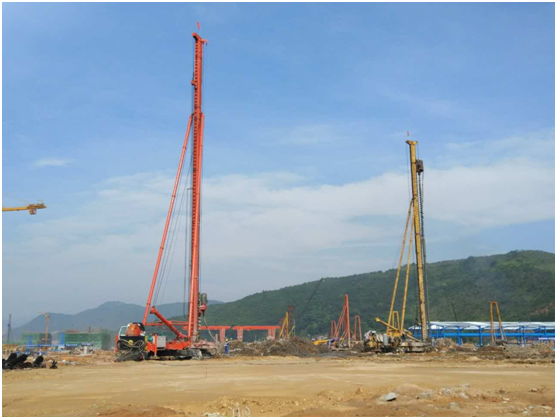 本工程2017年6月30日開始施工,于2018年2月7日竣工,共計(jì)完成樁徑500mm,樁長22m-35m,樁數(shù)5212根,混凝土強(qiáng)度為C25,混凝土方量29432m³。高峰期時(shí)投入長螺旋鉆機(jī)7臺(tái)套,挖掘機(jī)3臺(tái)。