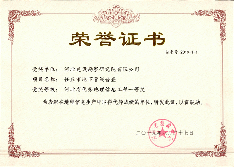 近日,由我公司完成的“任丘市地下管線普查項(xiàng)目”榮獲河北省測(cè)繪學(xué)會(huì)優(yōu)秀地理信息工程一等獎(jiǎng),“江蘇大唐國際呂四港有限責(zé)任公司廠區(qū)沉降觀測(cè)”、“浙江大唐烏沙山發(fā)電廠主要建(構(gòu))筑物沉降觀測(cè)”項(xiàng)目榮獲河北省測(cè)繪學(xué)會(huì)優(yōu)秀地理信息工程二等獎(jiǎng)。
