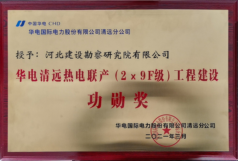 我公司榮獲華電清遠熱電聯(lián)產(chǎn)(2×9F級)工程建設(shè)功勛獎