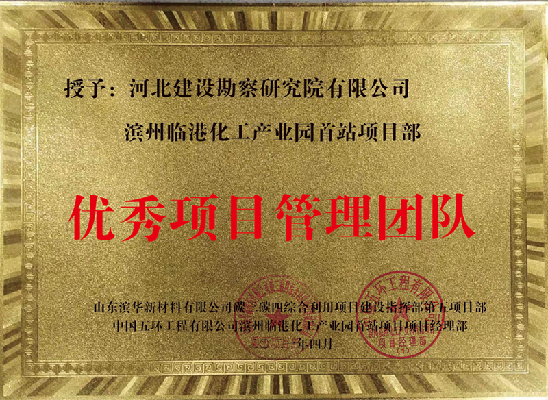 在表彰會上,山東濱華新材料有限公司項目部、中國五環(huán)工程有限公司項目部有關領導,對于我項目部的工作表現(xiàn)予以充分肯定和高度贊揚,并授予我公司項目部“優(yōu)秀項目管理團隊”、呂琳同志“優(yōu)秀項目經理”、宋燁“優(yōu)秀項目總工”、李宗剛“優(yōu)秀施工經理”、丁月林“優(yōu)秀HSE經理”、楊振林、陳珂瓏、張成良“優(yōu)秀質量員”榮譽稱號。