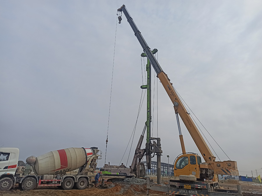 本項(xiàng)目一體化罐區(qū)化工原料產(chǎn)品罐區(qū)樁基工程,設(shè)計(jì)為CFG樁,樁徑為500mm,樁長為12m,共1054根,工程量2483.43m³;液氨罐組樁基工程,采用樁徑800mm旋挖成孔灌注樁,基樁分類為端承樁。樁長為36-39m,共88根,工程量1616m³;