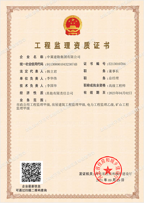 二、公司于2021年9月29日取得了市政公用工程監(jiān)理甲級資質(zhì)證書,可承接以下工程監(jiān)理項目: