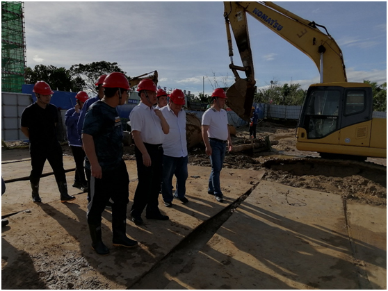 自9月13日中冀建勘辦公樓開工儀式以來,經(jīng)過近一個月時間的努力,現(xiàn)場基本達(dá)到了24小時不間斷施工狀態(tài)。韓董事長一行人首先來到項目施工現(xiàn)場,對現(xiàn)場周邊環(huán)境、施工現(xiàn)場質(zhì)量控制、安全管理、基坑支護(hù)工程進(jìn)度情況等進(jìn)行了檢查。在聽取項目匯報后,李總經(jīng)理肯定了項目部在項目管理上的工作成果,重點提出對現(xiàn)場混凝土抽查檢測和基坑支護(hù)方案優(yōu)化等問題,強(qiáng)調(diào)狠抓現(xiàn)場質(zhì)量管理等事項。韓董事長要求建設(shè)單位、施工單位和監(jiān)理單位要各負(fù)其責(zé),嚴(yán)格把控現(xiàn)場質(zhì)量控制、安全管理,按時保質(zhì)的完成基礎(chǔ)施工工程,爭取明年3月底完成±0以下施工。同時要求項目部在今后的工作中繼續(xù)嚴(yán)格執(zhí)行公司管理要求,做好疫情管控,細(xì)化項目質(zhì)量、安全、進(jìn)度管理,樹立良好的中冀建勘形象,努力把項目建設(shè)成為海口江東新區(qū)優(yōu)質(zhì)工程,為中冀建勘打開海南總承包市場打下良好基礎(chǔ)。