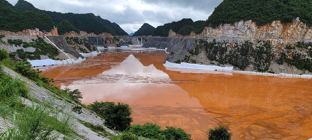 對(duì)尾礦庫(kù)來說防止?jié)B漏極其關(guān)鍵,此項(xiàng)目排泥庫(kù)庫(kù)區(qū)位于巖溶發(fā)育區(qū),巖溶治理是關(guān)鍵中的關(guān)鍵。庫(kù)周設(shè)計(jì)3座堆石壩,2座混凝土重力壩,壩體的施工質(zhì)量關(guān)系排泥庫(kù)的運(yùn)行安全。