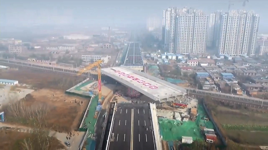 由我公司監(jiān)控監(jiān)測(cè)的辛集市教育路跨石德鐵路立交橋轉(zhuǎn)體成功