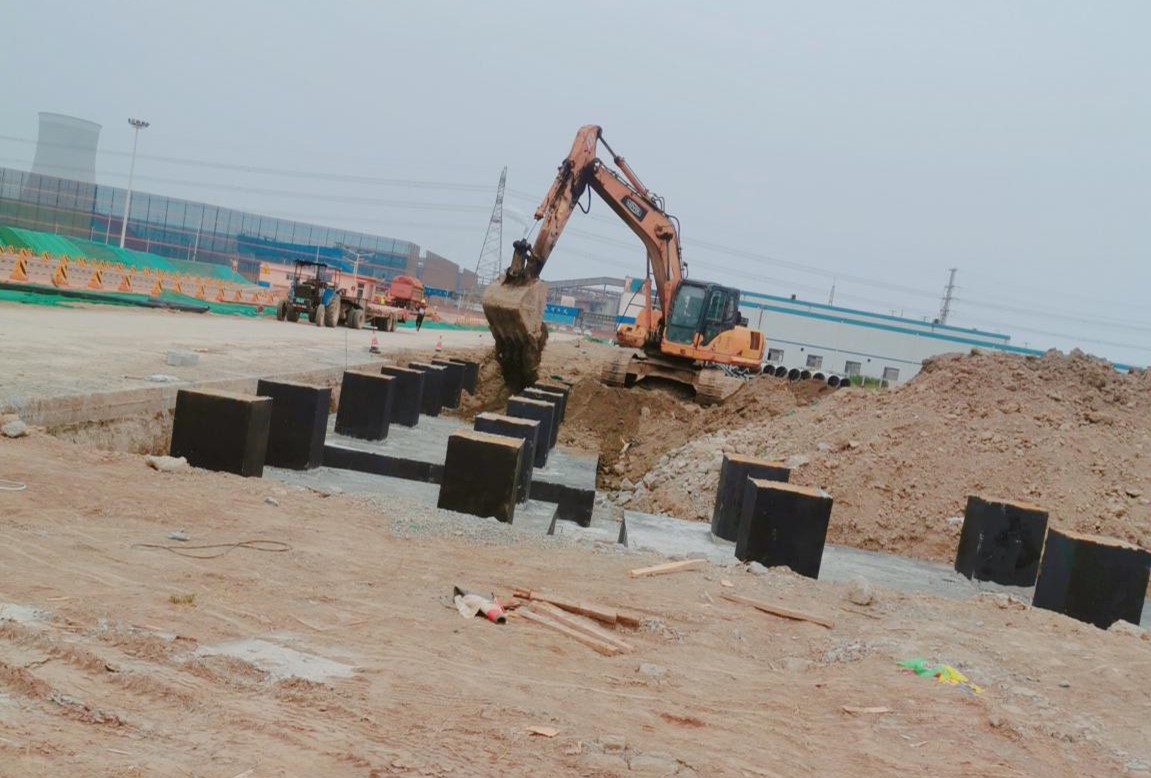 該項目主要為獨立基礎(chǔ)施工,局部地基較軟,需要換填級配砂石處理,以保證地基不發(fā)生沉降。如何確保大體積混凝土施工不產(chǎn)生裂縫為該項目難點和重點。在業(yè)主的配合及我公司成員的努力下,該項目自2021年03月16日開工,2021年10月8日竣工驗收完成,歷時206天,質(zhì)量驗收合格,順利完工。