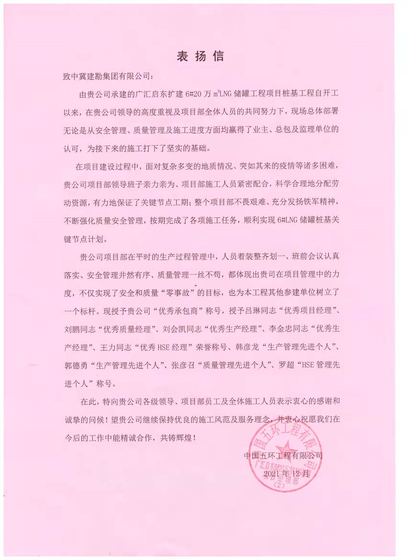 近期公司連續(xù)收到業(yè)主及總包發(fā)來的表揚(yáng)信,對我公司項(xiàng)目的質(zhì)量及安全管控等方面的工作表示了一致認(rèn)可。