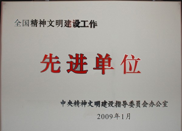近年來,我公司堅(jiān)持以科學(xué)發(fā)展觀為指導(dǎo),在全體員工中積極開展精神文明創(chuàng)建活動(dòng),文明施工程度和員工素質(zhì)不斷提高,精神文明建設(shè)取得顯著成績。近日,我公司受到中央精神文明建設(shè)指導(dǎo)委員會辦公室表彰,被授予“全國精神文明建設(shè)工作先進(jìn)單位”稱號。