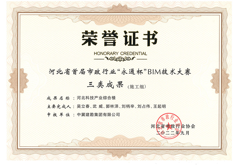 公司兩項(xiàng)工程技術(shù)成果在河北省首屆市政行業(yè) “永通杯”BIM技術(shù)大賽中喜獲殊榮