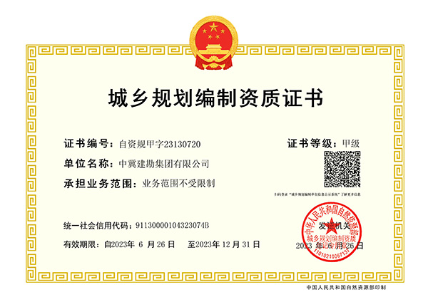經(jīng)過10個月的精心準(zhǔn)備和實(shí)施,集團(tuán)公司于2023年6月26日通過了自然資源部城鄉(xiāng)規(guī)劃編制單位資質(zhì)審查,喜獲城鄉(xiāng)規(guī)劃編制單位甲級資質(zhì)。城鄉(xiāng)規(guī)劃編制單位甲級資質(zhì)是規(guī)劃行業(yè)的最高資質(zhì)等級,該資質(zhì)的取得將有力促進(jìn)公司城鄉(xiāng)規(guī)劃編制業(yè)務(wù)開展,對公司轉(zhuǎn)型升級、地方市場開拓將起到重要作用,為公司持續(xù)穩(wěn)定發(fā)展奠定更加堅(jiān)實(shí)的基礎(chǔ)。