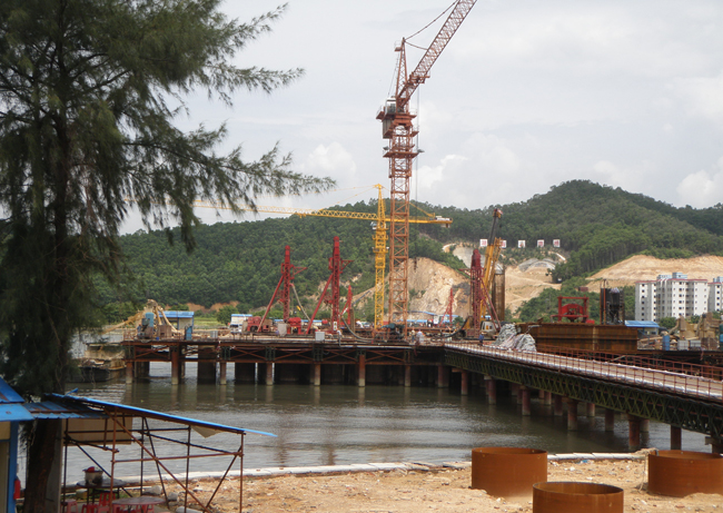 共完成直徑φ2.0m,樁長65~93.5m,111根鉆孔灌注樁,混凝土灌注量 30946.1m3。