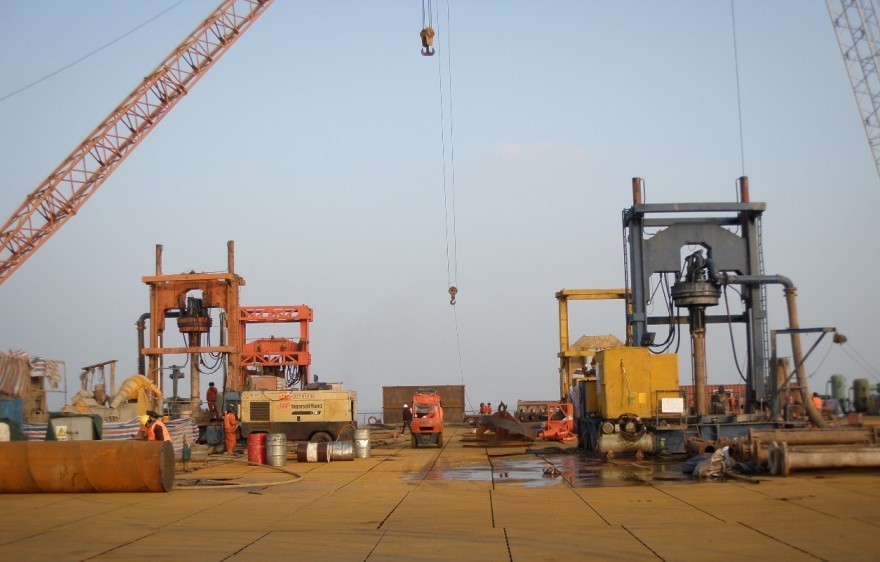 本工程豎井采用鉆井法施工。鉆孔采用全液壓鉆機(jī)氣舉反循環(huán)排渣、一次性鉆進(jìn)成孔;采用鋼井壁,漂浮法下沉,孔口焊接接長(zhǎng);壁后充填水泥漿進(jìn)行止水固壁。