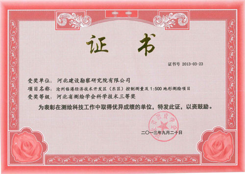 近日,由工程測(cè)量公司完成的滄州臨港經(jīng)濟(jì)技術(shù)開發(fā)區(qū)(東區(qū))控制測(cè)量及1:500地形測(cè)繪項(xiàng)目,被河北省測(cè)繪學(xué)會(huì)評(píng)為河北省測(cè)繪學(xué)會(huì)科學(xué)技術(shù)三等獎(jiǎng)。